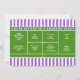 Invitations créatives sur le thème du tennis pour une fête ou un événement, avec un court de tennis sur un fond rayé violet.