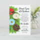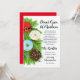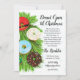 Invitation magnifiquement illustrée avec des donuts, des cannes à sucre et des branches de pin sur un fond texturé enneigé.