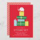 C'est une invitation à une fête de vacances d'échange de cadeaux éléphant blanc avec des cadeaux et une illustration d'éléphant.