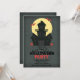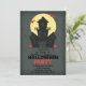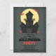 Invitation de fête de maison hantée sinistre avec une maison hantée sinistre avec des chauves-souris rouges et des citrouilles contre une lune jaune pâle. Vous pouvez déplacer/supprimer/modifier la plupart des éléments de conception/polices/fond selon vos choix/préférences. N'oubliez pas de choisir le type de papier lors de la commande de vos invitations !
