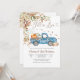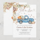 Célébrez l'amour et la beauté de la saison avec cette charmante invitation de mariage automnal. Avec un camion bleu vintage rempli de citrouilles, de ballons et entouré de feuilles qui tombent, ce design capture parfaitement l'élégance rustique de l'automne. Idéal pour honorer les futures mariées, il combine des couleurs saisonnières chaudes avec une typographie élégante pour créer un souvenir inoubliable. Personnalisez facilement pour votre événement et impressionnez vos invités avec un design festif unique qui donne le ton à une célébration joyeuse.