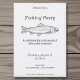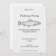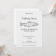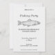 Une invitation à une fête de pêche simple et minimaliste avec une illustration d'une truite en dessin au trait. Vous pouvez l'utiliser pour une retraite, un anniversaire, une fête en plein air, un barbecue de poisson, etc.