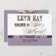 Des polices élégantes et amusantes annoncent le message "Mangeons, buvons et marions-nous !" sur un délicieux ensemble de faire-part de mariage fantaisiste. Dans une palette de couleurs lavande, prune, brun chocolat et blanc, propre et nette, c'est le meilleur du vintage avec une touche moderne. Le recto comporte le texte et vos noms avec la date de votre mariage. Au verso, deux ornements d'imprimeur avec une esperluette en police de caractères calligraphiée élégante et le texte "Célébrez avec nous" dans des polices uniques et amusantes, ainsi que les informations relatives au faire-part de réception de mariage. Il existe une gamme complète de produits disponibles avec ce design et nous pouvons le réaliser dans n'importe quelle combinaison de couleurs que vous souhaitez.