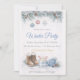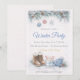 Conception de rassemblement hivernal avec des tons bleus doux et ivoire, guirlande de pin avec ornements et texture de neige légère. Les accents détaillés comprennent des bottes à lacets, un chapeau tricoté et une tasse de cacao chaud avec des cannes à sucre. Titre de script avec une mise en page propre adapté pour organiser une fête saisonnière à la maison.