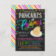Génial et adorable, cette invitation de brunch/brunch de crêpes est idéale pour des fêtes d'anniversaire amusantes pour les enfants/filles de tous âges ! L'invitation présente des graphismes amusants et festifs sur un fond de tableau noir faux