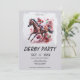 Préparez-vous pour la célébration ultime de la "Course des Roses" ! Cette invitation élégante pour une fête de Kentucky Derby présente une superbe illustration à l'aquarelle d'un cheval de course au galop et de son jockey, encadrée de roses rouges vibrantes et d'une bordure verte unique avec couture. La typographie classique serif ajoute une touche de sophistication sudiste à votre événement.