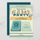 Invitation à une soirée de jeux de société avec une typographie amusante de "Soirée de jeux de société''. Cette conception comprend des éléments de bleu, jaune, rouge et orange, un fond de plateau de jeu, des dés, des pièces de jeu, des cartes de jeu et des éléments inspirés des jeux de société. Les produits comprennent un modèle pour une personnalisation personnelle.