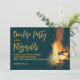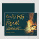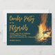 Modèle d'invitation à une soirée de feu de jardin. Un design de feu qui brûle avec un fond bleu très foncé et un texte jaune-orange. Le titre de la fête et le nom / lieu sont en grands caractères. Cette invitation horizontale est parfaite pour une réunion décontractée avec des amis ou pour célébrer un anniversaire.
