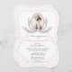 Retournez à des temps fastueux avec cette invitation à une soirée de thé inspirée de l'ère Régence. La bordure rose doux avec des fioritures en forme de plumes améliore le portrait féminin représenté dans un simple cadre floral.