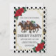 Célébrez le jour de la course avec style avec cette invitation de fête vintage pour le derby de course de chevaux. Caractérisée par un motif classique argyle, des roses rouges élégantes et une illustration dynamique de chevaux de course, cette conception est parfaite pour organiser une fête de Kentucky Derby, une célébration de course de chevaux ou un événement sur le thème vintage. Idéal pour les rassemblements du jour du derby, les fêtes de printemps et les célébrations élégantes sur le thème des courses. Une invitation élégante et intemporelle pour un plaisir inoubliable le jour de la course.
