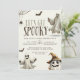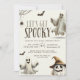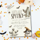 Organisez la fête d'Halloween ultime avec cette invitation de fête d'Halloween « Allons-y pour la frousse » ! Parfait pour les enfants, les familles ou les soirées déguisées pour adultes, ce design mignon et légèrement effrayant présente des fantômes joyeux, des chauves-souris, des toiles d'araignée et un épouvantail citrouille fantaisiste portant un chapeau de sorcière. Idéal pour inviter vos invités à votre concours de costumes ou à votre rassemblement pour une tournée de friandises. Personnalisez facilement avec les détails de votre événement, y compris la date, l'heure, le lieu et les informations de RSVP.