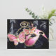 Définissez le ton d'une soirée inoubliable avec cette élégante invitation à une soirée masquée. Avec un masque rose et or magnifiquement détaillé orné d'accents de papillons délicats, ce design allie sophistication et charme fantaisiste.