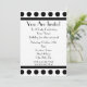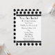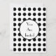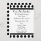 Une simple invitation avec un motif à pois noir et blanc en haut et en bas de la face avant. Garniture noire et police Parisienne noire. Personnalisez avec les détails de votre occasion. Le côté opposé présente un design uni avec une forme de cercle au milieu, encadrant le texte.