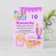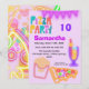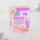 Préparez-vous à une fête d'anniversaire totalement démente pour les 10 ans de votre enfant ! Cette invitation électrisante de format 5x7 regorge de vibrations néon des années 80, avec une pizza amusante, des frites, des boissons et des fanions avec texte personnalisé. Le titre vibrant "PIZZA PARTY" en police rétro crée l'ambiance pour une célébration inoubliable.