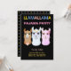 Carte d'invitation pour une soirée pyjama Llama. Célébrez un anniversaire ou une simple soirée pyjama. Trois adorables lamas sur fond noir. Motif étoilé multicolore au verso. Le texte est prêt à être personnalisé. Le mot lama signifie plusieurs choses. Lama en espagnol signifie appel et flamme (sacré). Lorsqu'on le lit à l'envers, c'est Am All. Les lamas sont connus pour leur gentillesse, leur unité et leur compassion. Profitez de votre soirée pyjama !!