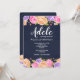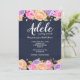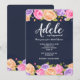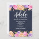 Une invitation florale époustouflante avec un fond bleu marine et une abondance de fleurs roses, lavande et jaunes bordant les bords supérieur et inférieur de la carte. (Conception par Freepik). <br/><br/>La carte est facile à personnaliser avec votre libellé, police, couleur de police et choix parmi six types de papier.<br/><br/>Pas exactement ce que vous recherchez ? Tous nos produits peuvent être conçus sur mesure pour répondre à vos besoins sans frais supplémentaires.<br/><br/>Contactez-nous simplement à askcottonlamb@gmail.com<br/><br/>Produits coordonnés disponibles :