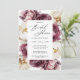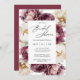 Cette luxueuse invitation à la douche nuptiale fleurie aquarelle capte l'essence de l'élégance rustique avec son abondant étalage de pivoines en harmonisant le bordeaux profond, la prune et le blanc d'ivoire doux. Les éléments botaniques féminins sont tissés dans une tapisserie artistique de la générosité de la nature et préparent vos invités pour un moment inoubliable avec l'Epouse à être avant son jour de mariage. Un modèle de texte moderne présente les détails de votre événement avec charme et sophistication.