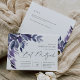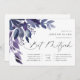 De belles invitations botaniques pour les bat mitzvah présentent des feuilles d'aquarelle et du feuillage dans les tons bleu indigo et violet, en cascade du coin supérieur gauche. Customisez avec vos détails Bat mitzvah alignés à droite et agrémentés de calligraphie chic. Ajoutez des détails supplémentaires, tels que le RSVP, l'itinéraire ou le stationnement, à l'envers.