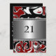 Invitation Abstrait Black White Red Silver Trim 21e anniversa