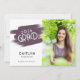 Cette invitation de remise de diplômes offre de l'espace pour 2 photos et du texte personnalisé pour les détails de votre fête. Le design est accentué par des touches de pinceau violet foncé à l'avant et à l'arrière.