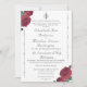 Le design présente l'image d'une croix d'argent et des anneaux au centre supérieur représentant le fait que le Christ est au centre de l'union nuptiale de l'homme et de la femme. L'image des roses fins est affichée aux coins supérieur gauche et inférieur droit. Un riche argenté élégant complète le cadre du format traditionnel pour un Faire-part de mariage catholique. Les noms de mariée et de mariée sont présentés dans une police nuptiale élégante. Le texte et la bordure sont présentés en couleur argent. Disponible également avec police et bordure rose-bordeaux. Conçu pour coordonner avec la Suite Mariage catholique Rose fine.