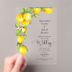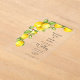 Faites une déclaration audacieuse et rafraîchissante avec cette Invitation Transparent Acrylique Citrus Mariage jaune Citron, parfaite pour les couples qui planifient une fête lumineuse et joyeuse. Fabriquée à partir d'acrylique de qualité supérieure et cristalline, cette invitation met en valeur des accents vibrants de citron jaune et de feuilles d'agrumes verts qui évoquent des sentiments de chaleur, de joie et de beauté naturelle. La typographie moderne est gravée ou imprimée directement sur l’acrylique, assurant une finition élégante et sophistiquée, à la fois durable et attrayante. Idéale pour les mariages d'été, les fêtes de jardin en plein air ou les événements à thème méditerranéen, cette invitation allie élégance et touche ludique. Vos invités adoreront recevoir ce gardien unique qui reflète parfaitement votre journée ensoleillée et remplie d'amour.