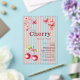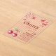 Célébrez un anniversaire spécial avec cette charmante invitation en acrylique "Une fête d'anniversaire très Cherry". Avec une délicieuse illustration aquarelle de cerises avec des feuilles et un ruban rose délicat, accentuée de papillons doux et un fond rayé rose pâle, cette invitation est parfaite pour une célébration fantaisiste et festive. Le matériau en acrylique transparent ajoute une touche moderne et élégante, rendant votre événement inoubliable. C'est un choix idéal pour un premier anniversaire, une fête de printemps ou d'été, ou pour quiconque aime une touche de fun fruité. Le design unique garantit que vos invités seront ravis de répondre à votre événement spécial.