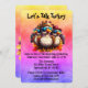 Cette invitation à l'action d'amitié "Parlons la Turquie" apporte une ambiance ludique et festive à votre rassemblement avec son design ludique. Sur le devant, trois dindons portant des lunettes de soleil et des casquettes, dressés contre un arrière - plan coloré à dégradé avec la légende audacieuse "Parlons de Turquie" en haut. Le dos de l'invitation présente un cadre coloré en plumes encerclant un message réfléchi : "Quel est votre souvenir préféré de l'Action d'Ami ?" Il est parfait pour ajouter une touche d'humour et de chaleur à votre célébration.