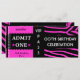 Invitation Admission Anniversaire Zebra Hot Pink Black