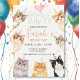 Invitation tes amis à la fête de purr-fect avec cette charmante invitation à thème kitten ! Ce design adorable présente sept chats aquarelles différents portant des casquettes de fête autour du texte, prêts à "PAW-TY". L'arrière - plan doux est accentué de ballons roses et de confettis, donnant un ton amusant et ludique. C'est l'invitation idéal pour n'importe quel amoureux des chats, anniversaire d'enfant ou fête sur le thème des animaux de compagnie. Personnalisez-le avec le nom de l'invité d'honneur (par exemple "Sarah"), la date, l'heure, l'adresse et les informations RSVP !