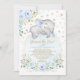 Invitation Adorable Eléphant Baby shower Or Bleu Par Mail