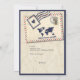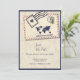 International Adventure Rustic Destination Wedding collection Ce design capture l'esprit de la déambulation et de l'amour, mêlant esthétique de voyage vintage et charme rustique. Avec ses rayures aériennes classiques en rouge et bleu, ses tons beiges muets et ses subtiles textures cartographiques, il évoque l'impression de partir en voyage romantique. Des éléments comme les timbres-poste, les détails de la carte du monde et le style rétro en font un lieu idéal pour les couples qui rêvent d'une célébration mondiale remplie d'aventure, de connexion et d'élégance intemporelle. Cette conception fait partie d'une collection de mariages personnalisables correspondante. Je peux gagner une petite commission grâce à des achats effectués via des liens de référence sur les médias sociaux.