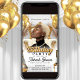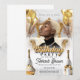 Cette invitation a une ambiance élégante avec des détails festifs blancs et or, des ballons dorés et un fauteuil trône élégant en arrière-plan. La mise en page comprend un espace dédié pour télécharger votre propre photo et modifier les détails de votre événement. C'est un choix parfait pour les grandes célébrations ou les fêtes sur le thème royal. Disponible en téléchargement numérique ou en impression directe via Zazzle, il offre à la fois style et commodité.