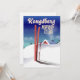 Affiche de voyage de ski vintage élégante à Kongsberg en Norvège, impression d'art.