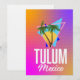Affiche rétro de voyage à Tulum Mexique dans un style lumineux rétro.