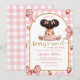 Invitation Afro African Girl Pink Bow strawberry berry sweet