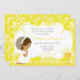 Cette invitation First Communion Damask présente une adorable coiffeuse brune dans une première robe sacrée de communion.
