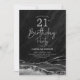 Gate noir et argent 21e anniversaire invitation de fête. Design élégant et moderne avec aquarelle agate marbre arrière - plan, faux parties scintillant argent et typographie script. Carte invitation branchée parfaite pour une célébration anniversaire féminine élégante. Invitations Zazzle imprimées ou téléchargement instantané modèle imprimable numérique.