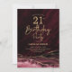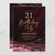Bourgogne et or agate 21e anniversaire invitation fête. Elégant design moderne avec marsala vin rouge foncé aquarelle agate marbre arrière - plan, faux parties scintillant or et typographie script police. Carte invitation branchée parfaite pour une célébration anniversaire féminine élégante. Invitations Zazzle imprimées ou téléchargement instantané modèle imprimable numérique.