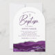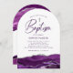 Ces élégantes et belles invitations Baptême en forme d'arc présentent un look géode agate violet, avec des accents faux argent et croix, et assortis calligraphie violette.