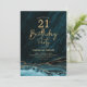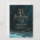 Turquoise et or agate 21e anniversaire invitation de fête. Elégant design moderne avec aquarelle turquoise agate marbre arrière - plan, faux parties scintillant or et typographie script. Carte invitation branchée parfaite pour une célébration anniversaire féminine élégante. Invitations Zazzle imprimées ou téléchargement instantané modèle imprimable numérique.