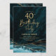 Turquoise et or agate 40e anniversaire invitation de fête. Elégant design moderne avec aquarelle turquoise agate marbre arrière - plan, faux parties scintillant or et typographie script. Carte invitation branchée parfaite pour une célébration anniversaire féminine élégante. Invitations Zazzle imprimées ou téléchargement instantané modèle imprimable numérique.