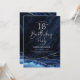 Bleu marine et argent agate 18e anniversaire invitation de fête. Elégant design moderne avec aquarelle bleu royal agate marbre arrière - plan, faux parties scintillant argent et typographie script police. Carte invitation branchée parfaite pour une célébration anniversaire féminine élégante. Invitations Zazzle imprimées ou téléchargement instantané modèle imprimable numérique.