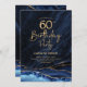 Invitation à la fête du 60e anniversaire de l'agate bleu marine et or. Elégant design moderne avec aquarelle bleu royal agate marbre arrière - plan, fausse parties scintillant or et typographie script police. Carte invitation branchée parfaite pour une célébration anniversaire féminine élégante. Invitations Zazzle imprimées ou téléchargement instantané modèle imprimable numérique.