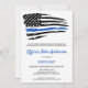 Mince Ligne Bleue Invitations de promotion policière. Célébrez votre promotion d'agent de police et vos amis et votre famille invitations à votre parti d'application de la loi avec cette invitation de promotion policière de la ligne Bleue mince moderne. Etats-Unis Drapeau américain en couleurs Police Drapeau, moderne noir bleu blanc design. Cette invitation de promotion d'officier de police est également parfaite pour la cérémonie de promotion du service de police, et la fête. Consultez notre collection pour trouver les cadeaux promotionnels de la police, les faveurs de la fête de promotion de la police et les fournitures. DROIT D'AUTEUR © 2021 Judy Burrows, Black Dog Art - Tous droits réservés. Agent de promotion de la police Thin Blue Line Party Invitation