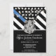 Ce design présente un drapeau de la force de police avec des bandes noires et blanches, ainsi qu'une fine bande bleue. Le badge de police et le texte argenté se trouvent au-dessus de tous les détails de la fête pour la retraite de l'agent des forces de l'ordre, du shérif, du capitaine ou du chef, détails de la fête de retraite.