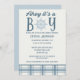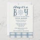 Ahoy ! C'est un garçon ! Célébrez l'arrivée d'un nouveau bébé dans le style avec ces invitations nautiques de douche bébé. Ils arborent le slogan mignon "Ahoy it's a boy" , une palette de couleurs bleu et crème et des accents plaid et nautiques.