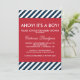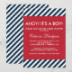 Ahoy C'est un garçon Baby shower Nautical Stripes Invitation Une invitation moderne baby shower rouge, blanc et bleu. Il a un blanc et bleu diagonale rayures motif arrière - plan et un cadre rouge. Cette invitation à la fête est parfaite pour les fêtes nautiques et océaniques.