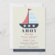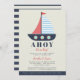 Ahoy It's a Boy Couples Baby shower Invitation - Notre modèle d'invitation nautique et Baby shower est un design moderne et nautique baby shower avec un voilier avec une voile bleue et blanche. Il comporte également un script manuscrit et une typographie moderne. AHOY est en caractères gras, bleu marine. L'arrière de l'invitation est bleu marine et rayures crème pour coordonner avec l'avant.