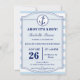 L'invitation baby shower de ce garçon comporte une ancre et une corde sur un cadre bleu clair avec une fine bordure bleu marine. Le arrière - plan est un motif rayé bleu clair et blanc. Il est prêt à être personnalisé et convient au baby shower d'un garçon.